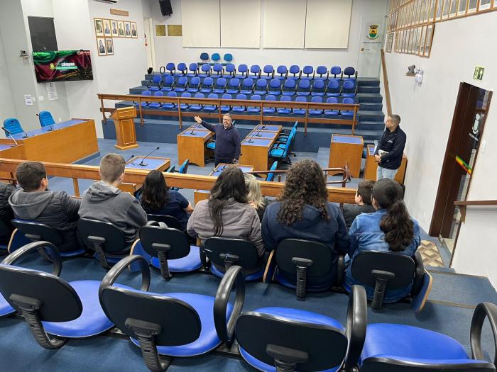 Na manhã de terça-feira (30), os estudantes do 8º ano da Escola Augusto Vitor Costa participaram de uma visita orientada à Câmara de Vereadores.